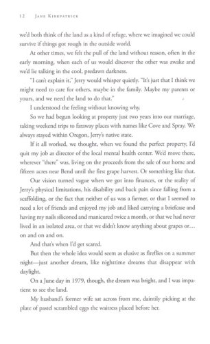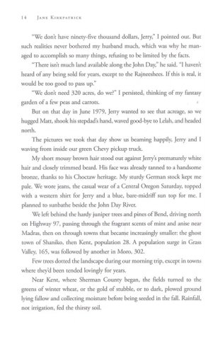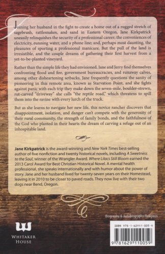 Joining her husband in the fight to create a home out of a rugged stretch of sagebrush, rattlesnakes, and sand in Eastern Oregon, Jane Kirkpatrick uneasily relinquishes the security of a professional career; the convenience of electricity, running water, and a phone line; and, perhaps most daunting, the pleasures of sporting a professional manicure. But the pull of the land is irresistible, and the couple dreams of gathering their first harvest from a yet-to-be-planted vineyard.Rather than the simple life they had envisioned, Jane and Jerry find themselves confronting flood and fire, government bureaucracies, and runaway calves, among other disheartening setbacks. Jane frequently questions the sanity of pioneering in this remote area, known as Starvation Point, and she fights against panic with each trip they make down the seven-mile, boulder-strewn, rut-carved "driveway" she calls "the reptile road," which threatens to spill them into the ravine with every lurch of the truck. But as she learns to navigate her new life, this novice rancher discovers that disappointment, isolation, and danger can't compete with the generosity of their rural community, the strength of family bonds, and the faithfulness of the God who planted in their hearts the dream of carving a refuge out of an inhospitable land.