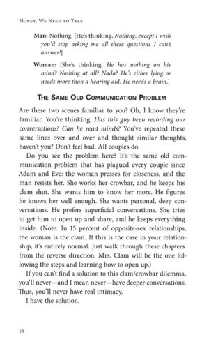 If a woman is in a relationship with a man, she wants to talk with him. She actually needs to talk with him. She believes—and she is correct—that if they can talk on a deeper level regularly, they will be much closer and much happier.
