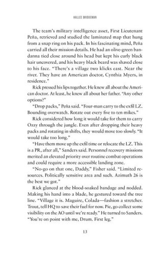 With two members of his team badly injured and rebels in hot pursuit, Rick will have to draw upon all his strength and cunning to get her out alive . . . because he's beginning to think they just might overcome their differences and be able to make a life together.