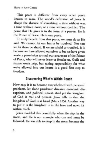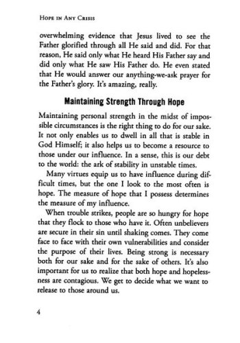 In HOPE in Any Crisis, pastor and best-selling author Bill Johnson reveals the powerful divine protection offered to you as a believer, three responses you can experience in times of uncertainty, and your responsibility to have hope in all things. You’ll discover the following: Kingdom solutions that bring hope in times of crisisHow to stay sane in the midst of craziness and bring peace to a fearful worldHow to rest in God’s protection as you pray the authority of Scripture As Christians, we have the answers the world is looking for, and times of crisis give us the opportunity to show them just how good God is.