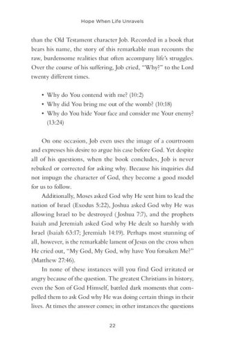 Both inspiring and comforting, Hope When Life Unravels invites us to draw closer to a God who is often active in our lives in times when we have trouble seeing him the most.