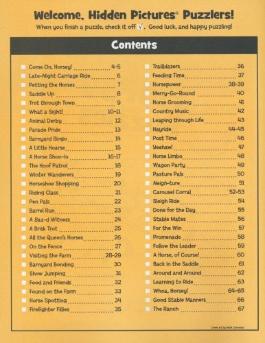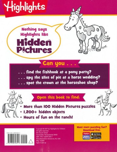 This puzzle book for kids provides horse lovers of all ages with hours of activity and puzzle fun! Kids who love puzzles will keep busy with this activity book packed with more than 100 horse puzzles drawn in the classic Highlights(TM) black-and-white style. With more than 1,200 objects to find, each puzzle is carefully designed to engage and entertain children while honing their concentration skills and attention to detail.