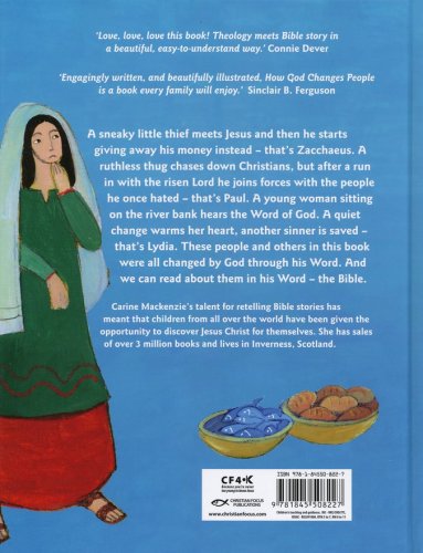 A sneaky little thief meets Jesus and then he starts giving away his money instead – that's Zacchaeus. A ruthless thug chases down Christians but after a run in with the risen Lord, he joins forces with the people he once hated – that's Paul. A young woman sits on the river bank, when she hears the Word of God, a quiet change warms her heart and another sinner is saved, a life changed and an eternity secured – that's Lydia. These people and others in this book were all changed by God through his Word. And we can read about them in his Word – the Bible.