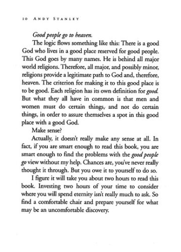 Surely there's more than one way to get to heaven? Bestselling author Andy Stanley addresses this popular belief held even among Christians. But believing that all good people go to heaven raises major problems, Stanley reveals. Is goodness not rewarded, then? Is Christianity not fair? Maybe not, he says. Readers will find out why Jesus taught that goodness is not even a requirement to enter heaven – and why Christianity is beyond fair. Andy Stanley leads believers and skeptics alike to a grateful awareness of God's enormous grace and mercy.