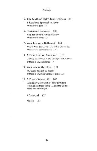 In this insightful unpacking of Philippians 4:8, pastor Jamie Rasmussen shows readers how to focus their thoughts and attention on the things in life that God has declared will make a meaningful impact on both a person's outlook and experience. It's the kind of thinking that has the power to change us, pointing us away from self-pity, anger, and resentment and toward contentment and personal peace, which helps us get the most out of life.