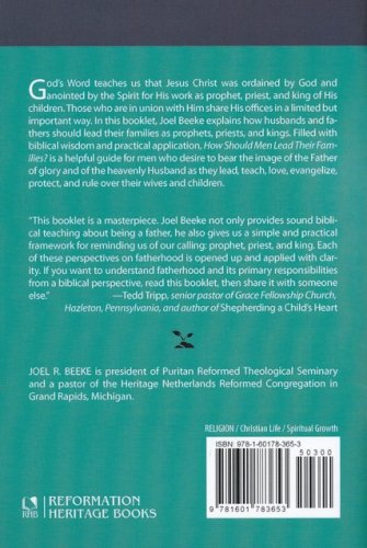 God’s Word teaches us that Jesus Christ was ordained by God and anointed by the Spirit for His work as prophet, priest, and king of His children. Those who are in union with Him share His offices in a limited but important way. In this booklet, Joel Beeke explains how husbands and fathers should lead their families as prophets, priests, and kings. Filled with biblical wisdom and practical application, How Should Men Lead Their Families? is a helpful guide for men who desire to bear the image of the Father of glory and of the heavenly Husband as they lead, teach, love, evangelize, protect, and rule over their wives and children.