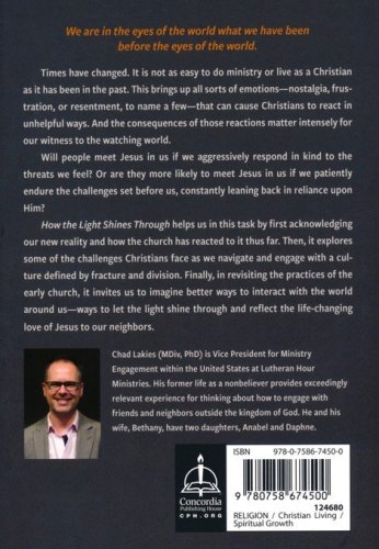 Author Chad Lakies brings a new perspective to the discussion about outreach and witnessing, one that is aware of the hurt felt on both sides and aims to find healing through what Christ brings His creation. First, he acknowledges the current and rather new reality and the ways in which the church has reacted thus far. Then, he explores the challenges Christians face in today's world and ways you can navigate these experiences. Finally, he asks you to turn back in time to the practices of the early church in order to find better ways to interact with the world today. 224 pages. Softcover.