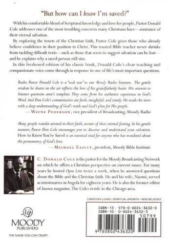 With his comfortable blend of Scriptural knowledge and love for people, Pastor Donald Cole addresses on of the most troubling concerns many Christians have: assurance of their eternal salvation. By exploring the tenets of the Christian faith, Pastor Cole gives those who already believe confidence in their position in Christ. This trusted Bible teacher never shrinks from tackling difficult texts, such as those that seem to suggest salvation can be lost, and he explains why a saved person still sins. In this freshened edition of his classic book, Donald Cole’s clear teaching and compassionate voice come through in response to one of life’s most important questions.