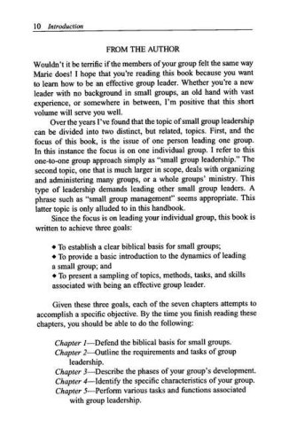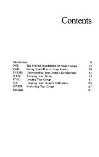 Whether you are a veteran or a new small-group leader, this book will provide you with the leadership skills, tools, and information you need. This leader’s resource can work with Bible study, fellowship, support, or task groups. Topics include the following:Defining your group’s purposeStimulating healthy fellowshipHandling conflictEvaluating your groupAsking great questions