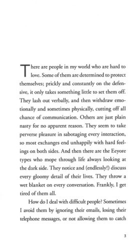 Prickly, defensive, nasty, volatile, withdrawn, miserable . . . aren't there days when you feel surrounded by difficult people? How do you cope? You can try avoiding them, gossiping about them, or giving them a piece of your mind. But wait! Don't your reactions make you hard to love too?
