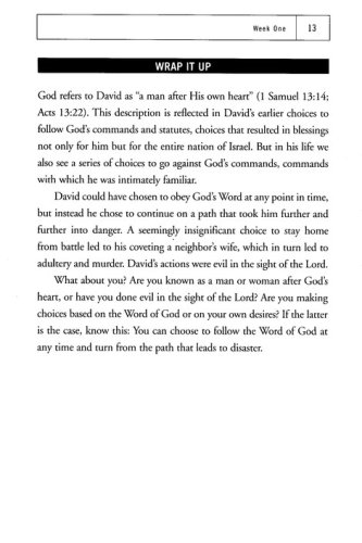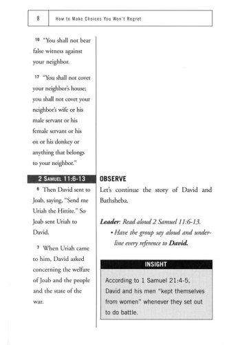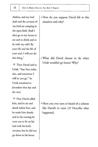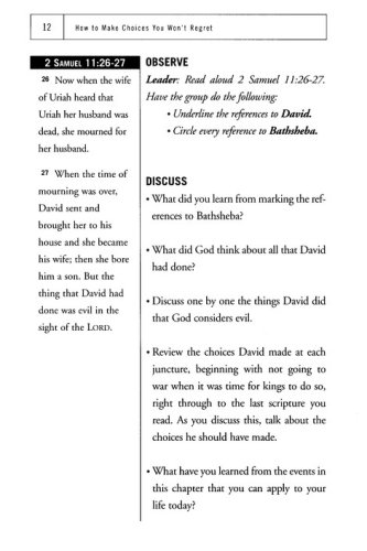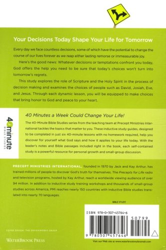 Where do you go for direction? What do you do when faced with temptation? How do you decide what choices to make? This study answers those questions by exploring the role of Scripture and the Holy Spirit in the process, as well as examining the decision-making of people such as David, Josiah, Eve, and Jesus. As a result, my friend, I pray you will be equipped to make choices that bring honor to God and peace to your heart.