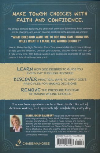 How to Make the Right Decision Every Time reveals biblical and practical keysto help you find direction, uncover your purpose, discover God’s will, and getit right every time. With biblical wisdom and successful examples of everydaypeople, this book will empower you to: