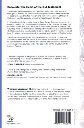 In this volume of the popular How to Read Series, Tremper Longman III gives us the kind of help we need to overcome the distance between the psalmists' world and ours. He explains the various genres of psalms, the way they were used in Hebrew worship, their relationship to the rest of the Old Testament, and the characteristics of Hebrew poetry. Then he looks at how Christians can appropriate the message and insights of Psalms today.