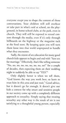You don't want to make a big deal out of it. Isn't everyone else already talking about sex? Yes, they are talking, and their words are shaping your child's understanding right now. In a culture that glorifies casual sex, kids will only learn to think biblically about it when parents speak up.