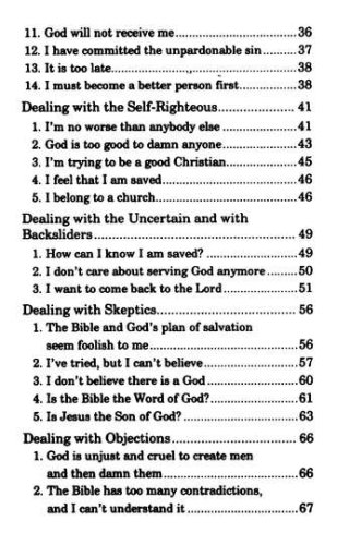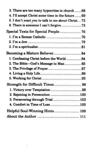 This easy-to-use handbook quickly points to the Scriptures that answer the questions and settle the doubts of people who have not yet met Christ.