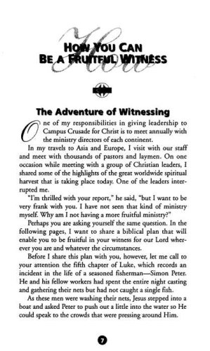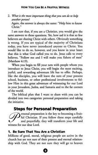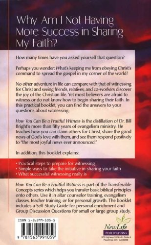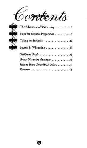 Why am I not having more success in sharing my faith? How many times have you asked yourself that question? Perhaps you wonder: What's keeping me from obeying Christ's command to spread the Gospel in my corner of the world? No other adventure in life can compare with that of witnessing for Christ and seeing friends, relatives, and co-workers discover the joy of the Christian life. Yet most believers are afraid to witness or do not know how to begin sharing their faith. In this practical booklet, you can find the answers to your questions about witnessing.