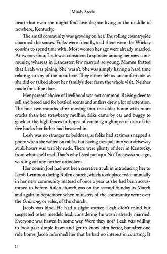 Leah Wicky moves to Kentucky where her father has set up a deer farm. With a strong desire to marry, she soon sets her sights on Joe who, despite his disabilities, has determination and an easy way about him. A sticky situation finally affords the opportunity for a friendship to form between them.