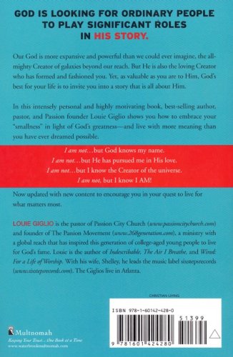 In this intensely personal and highly motivating book, bestselling author, pastor, and Passion founder Louie Giglio shows you how to embrace your "smallness" in light of God’s greatness—and live with more meaning than you have ever dreamed possible.