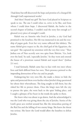 I Am Rahab provides a better understanding of God, with a focus on the breadth of his reach to use and redeem all things for the good of his purposes, and for their benefit as his beloved children.