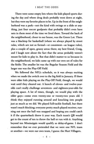 Looking back on how he went from being a homeless child in Memphis to playing in the NFL, Michael talks about the goals he had to break out of the cycle of poverty, addiction, and hopelessness that trapped his family. Eventually he grasped onto football as his ticket out and worked hard to make his dream into a reality. With his adoptive family, the Touhys, and other influential people in mind, he describes the absolute necessity of seeking out positive role models and good friends who share the same values to achieve one's dreams. Sharing untold stories of heartache, determination, courage, and love, I Beat the Odds is an incredibly rousing tale of one young man's quest to achieve the American dream.