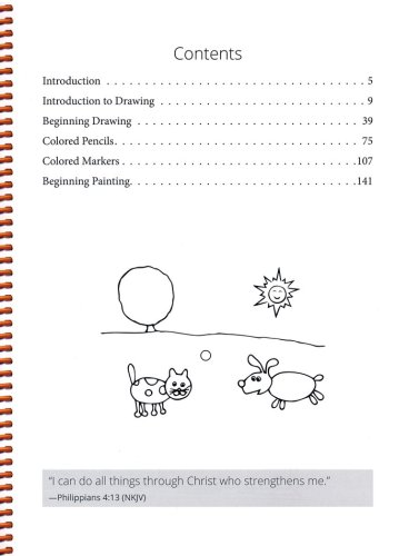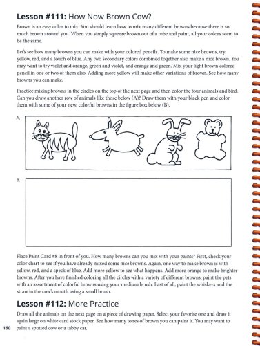 Start learning how to draw, color, and paint with this comprehensive beginner's course! Students begin with drawing lessons before moving on to learning about more complex aspects of art through colored pencils, markers, and beginning painting exercises. Comprehensive and practical, lessons include drawings to illustrate principles and act as suitable examples. Lessons deal with a specific topic that are explained in simple, fun terms, and often include "pointer tips." The included set of cardstock cards allows children to practice painting and coloring with markers on an appropriate surface. 196 pages/142 lessons with thirty-eight 8.5" x 11" paint & marker Cards. Revised. Spiralbound. NIV Scripture used. Ages 6-10.
