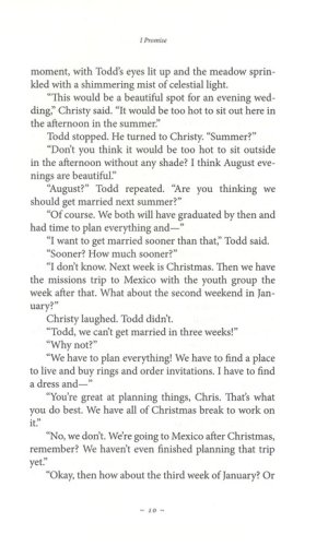 As the time draws closer to the wedding, Todd and Christy face differences between them that might make married life more complicated than they thought, and Christy wonders if their relationship can work when put to the test. Will they make it down the aisle to tell each other "I promise" for the rest of their lives?