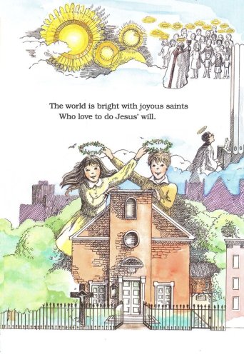 This charming presentation of the beloved classic hymn by Lesbia Scott (1898-1987) draws children into the vivid world of saints and their life adventures. We see how each saints have demonstrated qualities of courage, joy, love of Christ, kindness, patience, and generosity. Best of all, children discover that they, too, can become saints, and that these heroes and heroines of the church belong not only to the past, but that "the world is bright with joyous saints" still. The saints of God today are moms and dads, storekeepers and school teachers, and, happily, "the saints of God are just folks like me, and I mean to be one too."