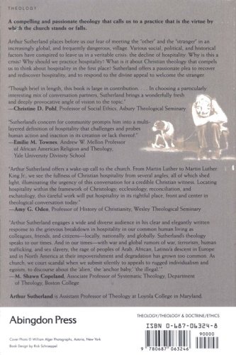 Arthur Sutherland places before us our fear of meeting the "other" and the "stranger" in an increasingly global, and frequently dangerous, village. Various social, political, and historical factors have conspired to leave us in a veritable crisis: the decline of hospitality. Why is this a crisis? Why should we practice hospitality? What is it about Christian theology that compels us to think about hospitality in the first place? Sutherland offers a passionate plea to recover and rediscover hospitality, and to respond to the divine appeal to welcome the stranger. Therein lies the central concern of the book: that hospitality is not simply the practice of a virtue but is integral to the very nature of Christianity’s position toward God, self, and the world—it is at the very center of what it means to be a Christian and to think theologically. He offers a challenging definition of hospitality and calls us to a practice that is the virtue by which the church stands or falls. Drawing on modern theologians (including Howard Thurman, Dietrich Bonhoeffer, Karl Barth, Martin Luther King Jr., and Letty Russell) and considering American slavery, the Holocaust, feminism, and prisons, Sutherland eloquently presents a Christian theology of hospitality.