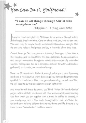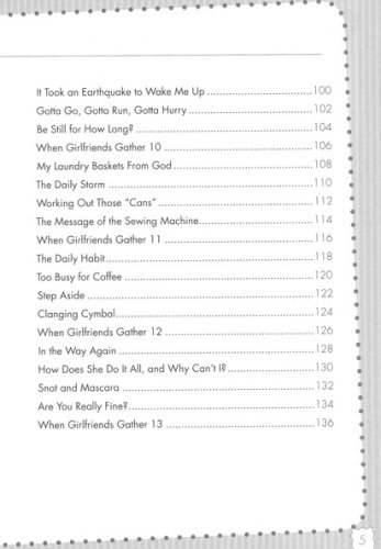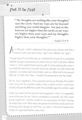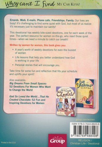 Written by women, for women, this book gives every frazzled woman a little peace through: A year’s worth of weekly devotions for even the busiest of women Bible insights that will help you see the forest through the trees Life lessons that help you better understand how God is working in your life