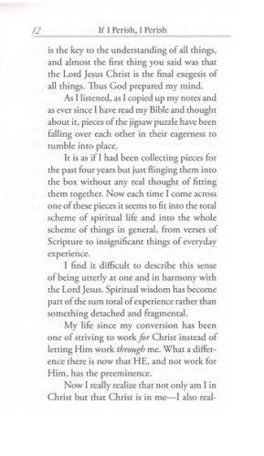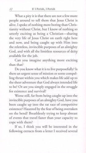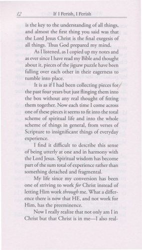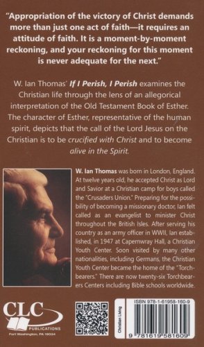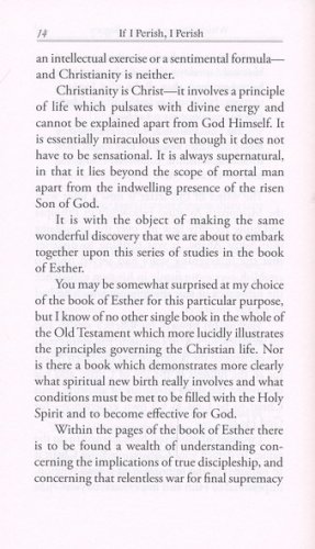 "If I Perish, I Perish" examines the Christian life through the lens of an allegorical interpretation of the Old Testament book of Esther. The character of Esther, representative of the human spirit, depicts that the call of the Lord Jesus on the Christian is to be crucified with Christ and become alive in the Spirit.