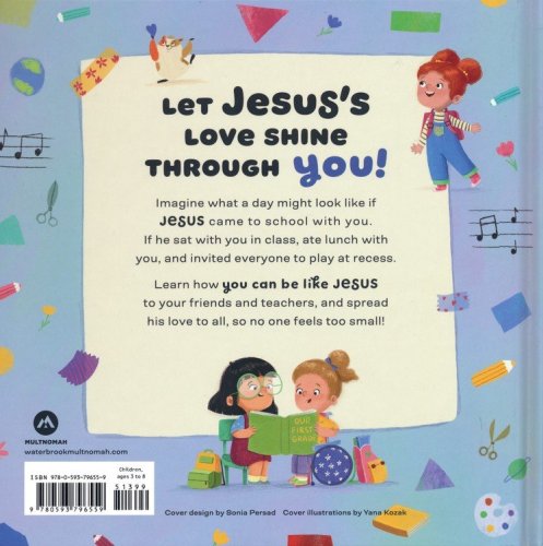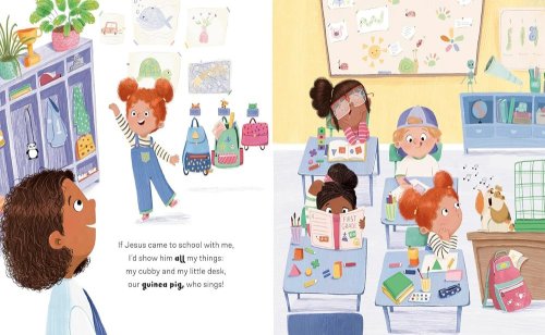 In this whimsical tale, a young girl imagines what it would be like if Jesus visited her school as a boy. She would show Jesus around her classroom, introduce her friends and teachers, listen to story time, and eat lunch together! But Jesus wouldn't stop at learning and sitting in class. He'd invite the lonely to join in on games and find a way to love and get along with everyone. Soon the young girl realizes that even though Jesus doesn’t attend her school, he can live through her: