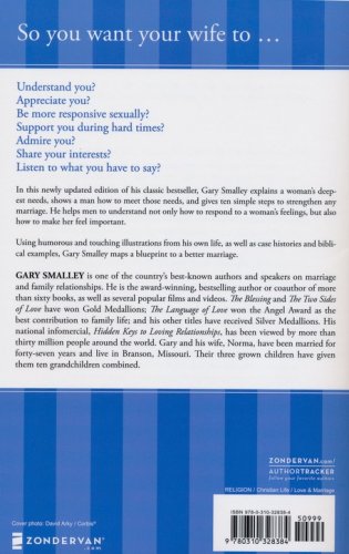 In this revised and updated edition of his classic bestseller, Gary Smalley explains a woman's deepest needs, shows men how to meet those needs, and gives ten simple steps to strengthen any marriage. He helps men to understand not only how to respond to a woman's feelings, but also how to make her feel important.