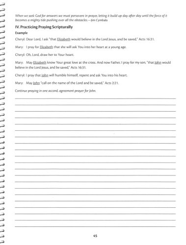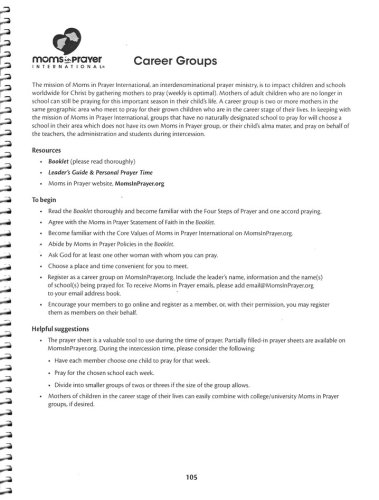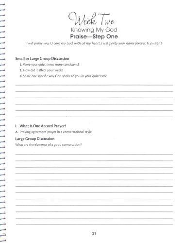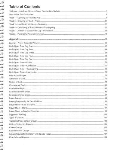 This Igniting a Passion to Pray student workbook is a 6-week study on the Four Steps of Prayer used in the Moms in Prayer groups (Praise, Confession, Thanksgiving, Intercession), plus a whole lot more. As you work through the study, discuss the questions with your group, and perform the suggested activities, you'll find yourself in a more intimate relationship with God and becoming more comfortable praying with and for others. In the back of the book are numerous appendices including homework study sheets, prayer poems Scripture prayers, and information on many different types of groups: preschool, grandmothers, church-based, military, working moms, etc.