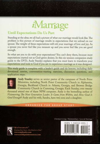 Andy Stanley is the senior pastor of three North Point Ministries campuses, with a cumulative congregation of more than twenty thousand. As couples voiced their various marital struggles to him, the common root problem became undeniably clear. The "me" syndrome, or the "I" effect, was tearing apart husbands and wives who were once head-over-heels in love. To help couples step back from their immediate circumstances and realize the bigger picture, he preached a series called "iMarriage." This DVD and study guide will empower couples everywhere to transform their marriages into the one God intends for them.