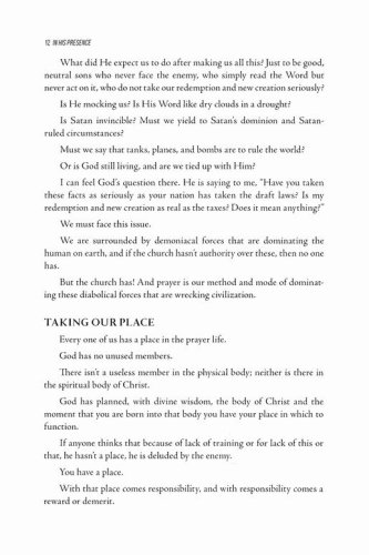 In His Presence has been a challenge and blessing to countless multitudes all over the world. It removes the mist surrounding the prayer life, leading us out of spiritual mysticism into the true light of life.