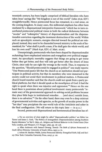 This book’s engagement with political theology from a Pentecostal perspective is the first of its kind.