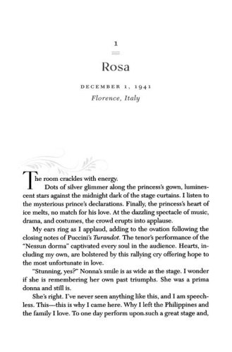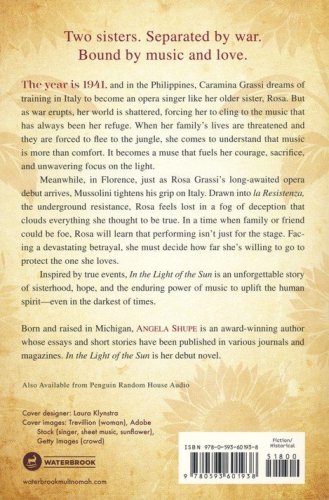 The year is 1941, and in the Philippines, Caramina Grassi dreams of training in Italy to become an opera singer like her older sister, Rosa. But as war erupts, her world is shattered, forcing her to cling to the music that has always been her refuge. When her family’s lives are threatened and they are forced to flee to the jungle, she comes to understand that music is more than comfort. It becomes a muse that fuels her courage, sacrifice, and unwavering focus on the light.