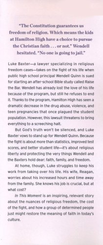 With a storm of national attention and criticism, Quinn is at a crossroads—he must choose whether to cave in and shut down the program or stand up for himself and his students. The battle comes with a high cost, and Quinn wants just one attorney on his side for this fight: Luke Baxter. In This Moment is an inspiring, relevant story about the nuances of religious freedom and how a group of determined people just might restore the meaning of faith in today’s culture.
