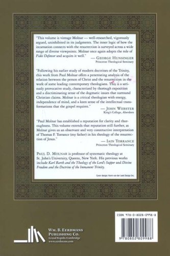 For too long contemporary theology has downplayed the importance of holding together the incarnation and the resurrection when thinking theologically. Paul Molnar here surveys the place of these key doctrines in the thought of several influential theologians: Karl Barth, Karl Rahner, Thomas F. Torrance, John Macquarrie, Gordon Kaufman, Sallie McFague, Roger Haight, John Hick, and Wolfhart Pannenberg.