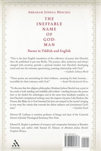 These 66 poems, here in English and Yiddish on facing pages, were collected in the first book Abraham Joshua Heschel ever published. They appeared in Warsaw in 1933 when Heschel was 26 years old and still a doctoral candidate in philosophy at the University of Berlin. Written between 1927 and 1933—and never published in English before—this is the intimate spiritual diary of a devout European Jew, loyal to the revelation at Sinai and afflicted with reverence for all human beings. These poems sound themes that will resonate throughout Heschel's later popular writings: human holiness, a passion for truth, awe and wonder before nature, God's quest for righteousness, solidarity with the downtrodden, and unwavering commitment to tikkun olam. In these poems we also discover a young man's acute loneliness, dismay at God's distance, and dreams of spiritual and sensual intimacy with a woman.