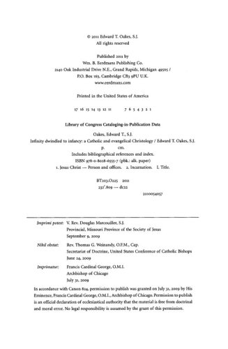 Drawing from a wide range of sources — contemporary New Testament scholarship and patristic Christology, key medieval theologians, major Protestant voices, Catholic theologians, and recent magisterial statements from Vatican II — Edward T. Oakes presents two millennia of thinking on one of the great paradoxes at the heart of Christian faith: “an infinite God who is finite man . . . in short, Infinity dwindled to infancy.”