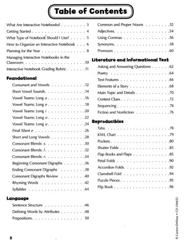 This 1st grade language arts notebook covers vowel sounds, consonant blends, consonant digraphs, sentence structure, and lessons on literature and informational texts that include poetry, text elements, main topic & details, sequencing, fiction & non-fiction, and more. Each lesson includes a teacher's guide with an introduction, step-by-step instructions, and a learning reflection. Reproducible section included in the back. 96 classroom-reproducible pages, softcover.