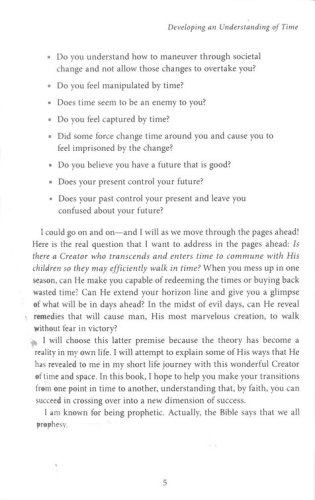Have you ever noticed how often we use the word “time” in our everyday conversations? Not only are we acutely aware of the passage of time, but our speech is also littered with references to it: We kill and waste time. Time flies, or sometimes it crawls. We refer to time in countless expressions and figures of speech. Chuck Pierce tackles the subject of time specifically as it relates to God and our relationship with Him, addressing some transcendental questions such as, how can we tell when we get “out-of-step” with God’s timing? Pierce moves readers from viewing time as a philosophy or a curse to seeing it as a real gift from God, presenting a new reality of space, time, spirit and truth as they advance through the pages. This book is for everyone who wants to take back their life, take their place above the linear timeline, and learn to live on earth influenced and empowered by an eternal God.