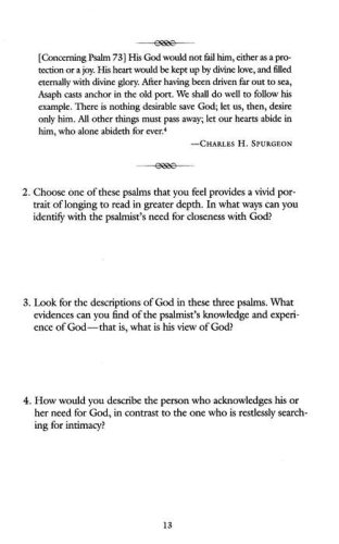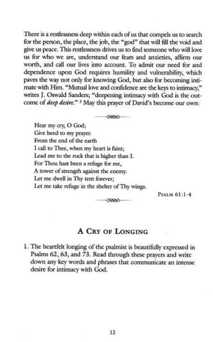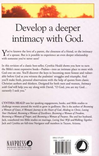 This topical Bible study for women by popular Bible study teacher and Navigator Cynthia Heald shows how the Lord personally meets with you in the Psalms. As you progress in your spiritual formation, you’ll become more honest and vulnerable before God as you track the Psalmists’ struggles and triumphs on their way to intimacy with God. Make fresh, personal observations with the help of quotes from classic Christian authors and thinkers, and you’ll spend more time reflecting and less time looking for “right answers.” Includes discussion questions.
