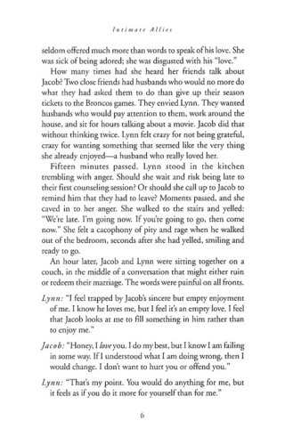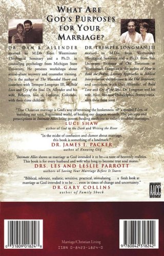 In Intimate Allies, counselor Dan Allender and theologian Tremper Longman III merge their minds and skills to strip away cultural expectations and takes a fresh look at God's design for the marriage relationship. The authors focus on five foundations taken from Genesis 1-3 and include an extensive review of other biblical passages on marriage. Each section begins with a real-life story concerning an unresolved marriage issue and concludes with the same story built on the “foundation” of a godly marriage. With eloquence and wisdom, Intimate Allies will challenge readers to move their marriages out of the mundane and into the fulfilling and enriching experiences God intended.