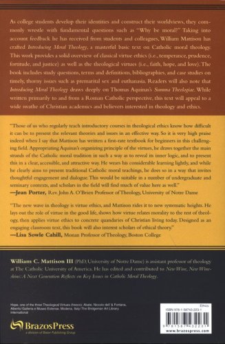 Whether in the cafeteria, classroom, or dorm lounge, questions abound on college campuses. Not only do students grapple with existential issues but they also struggle with ethical ones such as "Why be moral?" In Introducing Moral Theology, William Mattison addresses this question as well as grapples with the impact that religious belief has on day-to-day living. Structured in two parts, this unique text on Catholic moral theology covers cardinal virtues (temperance, prudence, fortitude, and justice) as well as theological virtues (faith, hope, and love). It is equipped with study questions, terms and their definitions, and illustrative case studies. Rooted in the Catholic tradition, this overview will also appeal to non-Catholics interested in virtue ethics.