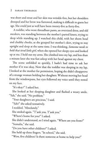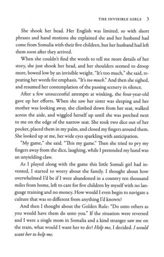 A Somali refugee whose husband had left her, Hadhi was struggling to raise five young daughters, half a world a way from her war-torn homeland. Alone in a strange country, Hadhi and the girls were on the brink of starvation in their own home, "invisible" to their neighbors and to the world. As Sarah helped Hadhi and the girls navigate American life, her outreach to the family became a source of courage and a lifeline for herself.