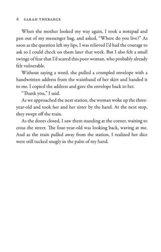 Twenty-seven-year-old Sarah The barge had it all – a loving boyfriend, an Ivy League degree, and a successful career – when her life was derailed by an unthinkable diagnosis: aggressive breast cancer. After surviving the grueling treatments – though just barely – Sarah moved to Portland, Oregon to start over. There, a chance encounter with an exhausted African mother and her daughters transformed her life again.