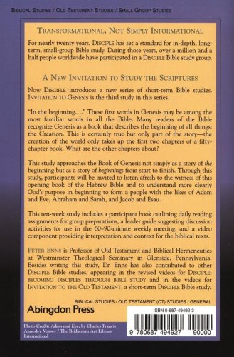 This study takes groups into the rich tapestry of Genesis exploring the interaction between God and very human people – pride, family relationships, conflict and journey all showcase the best known stories of Creation, Noah, Abraham, Isaac, Jacob and Rebekah and Joseph. The video reflects the drama of the Genesis stories, first with selected text dramatized by an actor, and then study writer, Peter Enns interviews a scholar to help unpack the meaning and the mystery in the stories. Participants for this Invitation to Genesis do not have to have an in-depth knowledge of the Bible to enjoy and benefit from participation. Reading just two chapters of Genesis a week, they will discover the life altering stories that will invite them to follow Christ as true disciples. This eleven-week study includes a participant book outlining daily reading assignments for group preparations, a leader guide suggesting discussion activities for use in the 60–90-minute weekly meeting, and a video component providing interpretation and context for the biblical texts. Sessions: The Beginning…and What Went Wrong Another Beginning: The Flood…and What Went Wrong Another Beginning: Abraham and the Patriarchs Abraham and a Glimpse to the Future The Promise Fulfilled: Isaac Another Beginning: Jacob and the Uneasy Birth of a People Jacob: The Struggle Continues Another New Beginning: Joseph and the Family of Israel The Trek Into Egypt An End and Another Beginning: Israel's Story