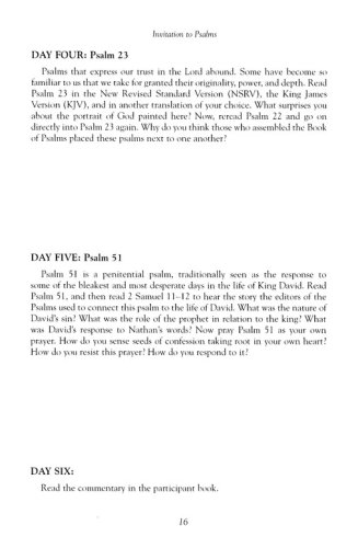 Participant Guide: guides daily study and preparation for discussion in the weekly group meeting. The expectation for daily study will be no more than thirty minutes. Psalms 10 sessions, 60-90 minutes Make a deeper connection to the world of the Psalms so that these well known scriptures can help you give voice to all aspects of our human experience—joy, faith, uncertainty and sorrow. During two weekly video segments, experience a varied presentation of individual psalm texts, including dramatic reading, music, dance, and images. Listen to insights into specific psalms presented by one of two biblical scholars through an informal, roundtable conversation format. Ideal experience for adults who are interested in the practice of prayer and worship and would like to connect prayer practice with Scripture. The study is accessible for adults with little prior Bible experience. Sessions: Word of God, Words of Prayer The Prayer Book of God’s People Praying the Psalms The Language of the Heart A Geography of the Imagination A Theology of the Imagination Lament and Praise Grace and Repentance Love and Wrath Hallelujah and Amen Michael Jinkins is an ordained Minister of Word and Sacrament in the Presbyterian Church (USA). He serves as Dean of Austin Presbyterian Theological Seminary, where he is also Professor of Pastoral Theology. Michael is the author of eleven books, including In the House of the Lord: Inhabiting the Psalms of Lament (Liturgical Press, 1998), Invitation to Theology (InterVarsity Press, 2001), and Letters to New Pastors (Eerdmans, 2006).